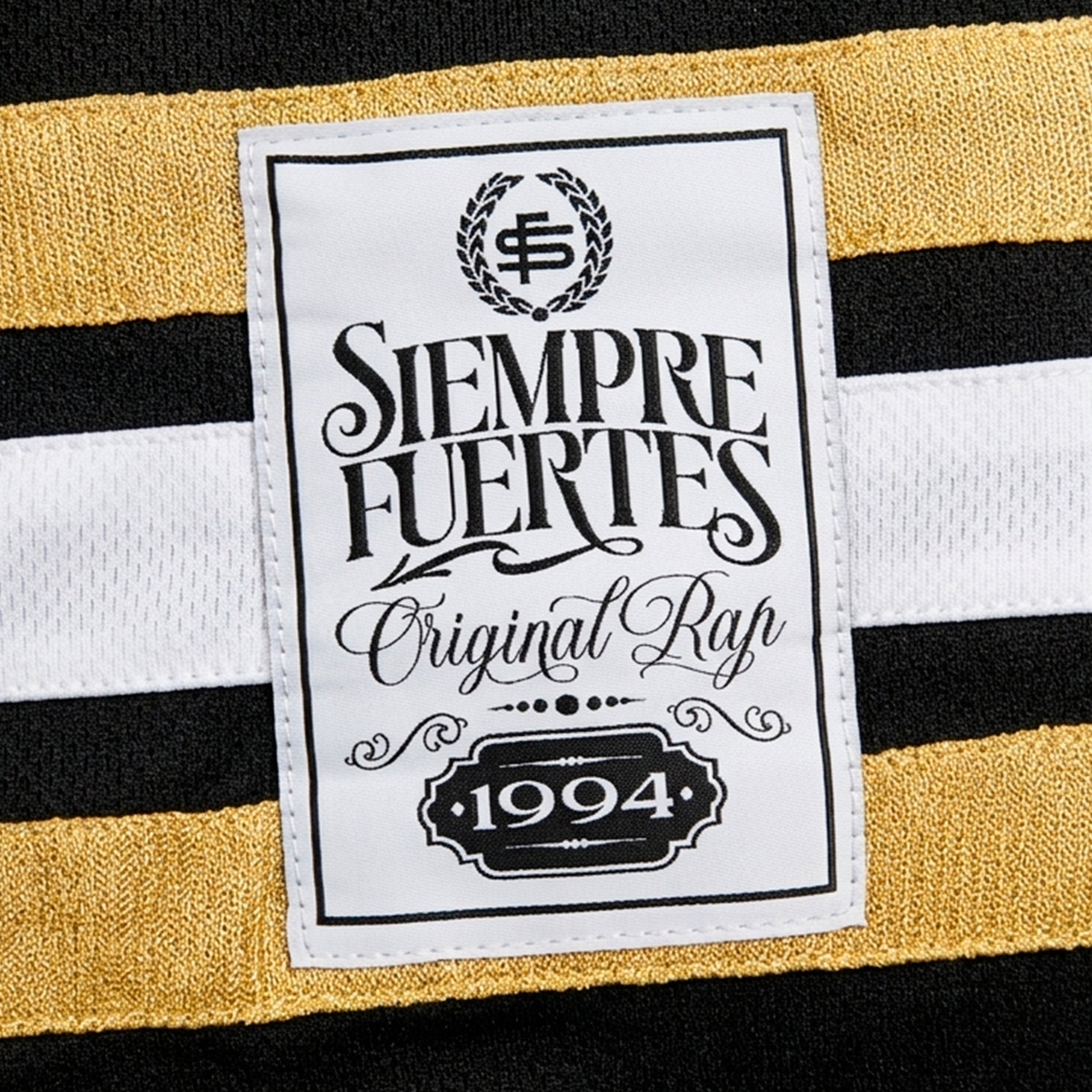 - Etiqueta interior Siempre Fuertes / Original Rap / 1994 con tipografía script